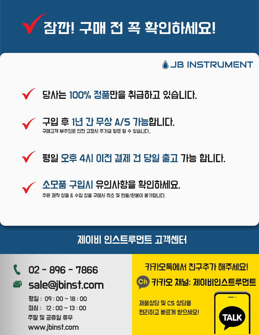 2. 사용자는 실제 조건에 따라 적절한 유체를 선택해야 하며, 필요한 경우 제이비인스트루먼트 (02-896-7866) 로 연락바랍니다. .